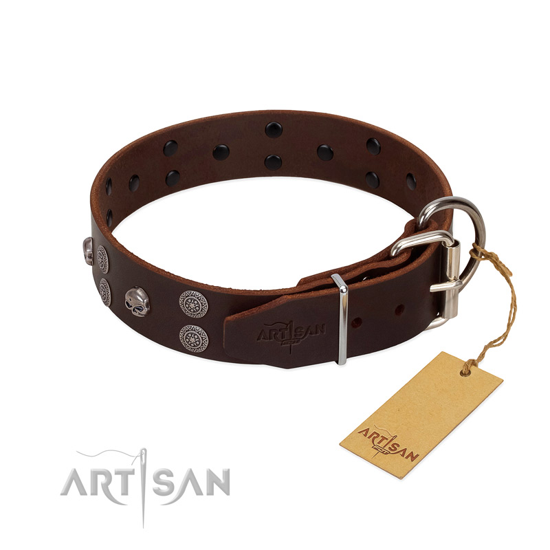 Top notch full grain natural leather dog collar with embellishments for handy use