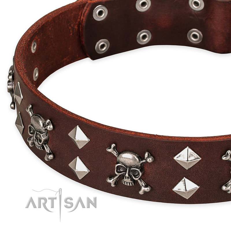FDT Artisan Distinguished Leather German Shepherd Collar with Skulls and Half-Ball Studs